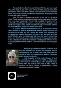 This website has two parts. Part 1 is all about your spiritual life, the choices you’ve made, the consequences you live with, and the future that is or can be yours. Scroll down to get a glimpse of the motive and attitude behind Part 1 (or click on the book to see sample chapters). The book Christ in Men is supported only by Scripture. Click here for the rationale behind that and to read one of the 52 chapters.